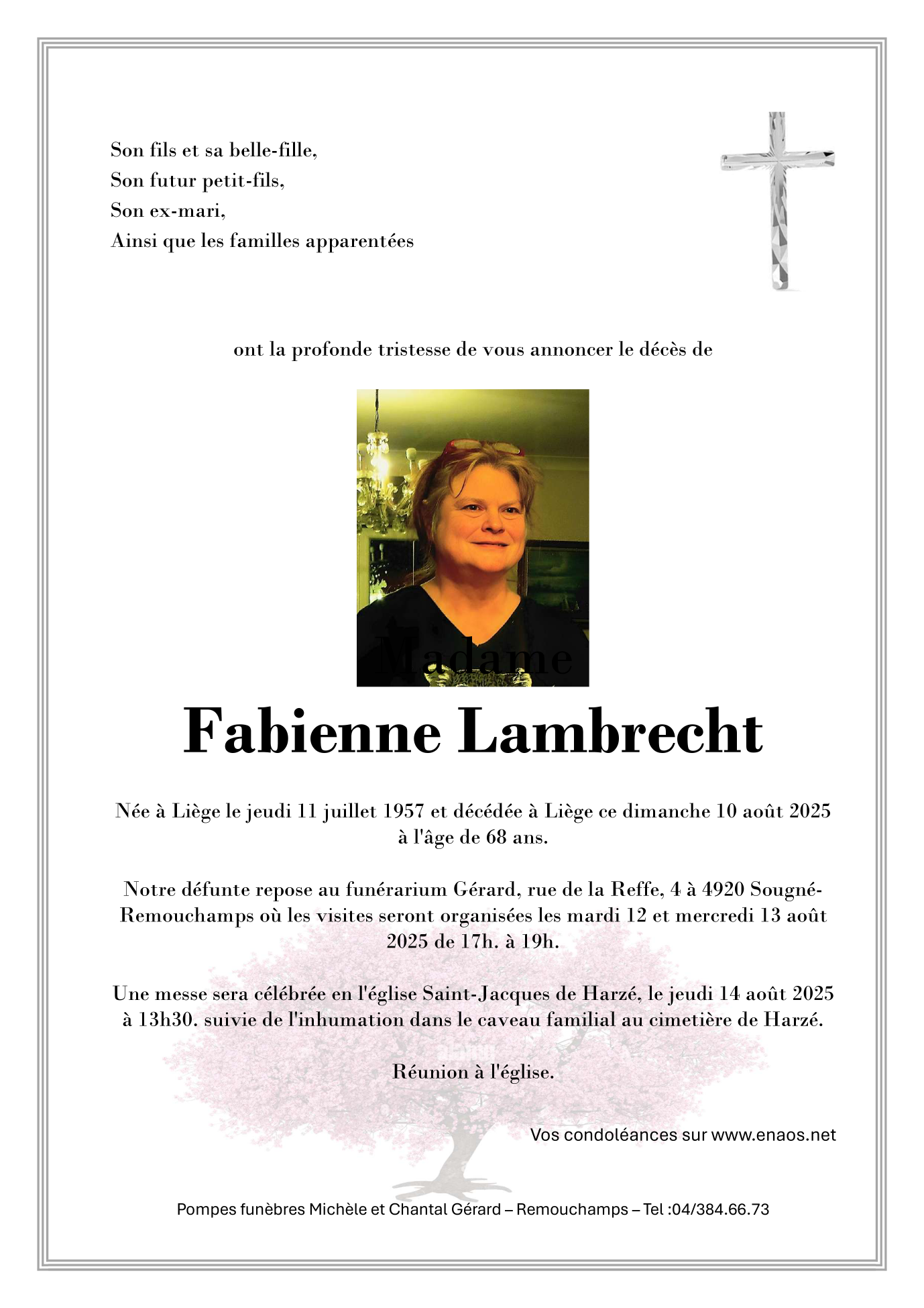 Décédée à Liège (4000) le dimanche 10 août 2025 à l'âge de 68 ans