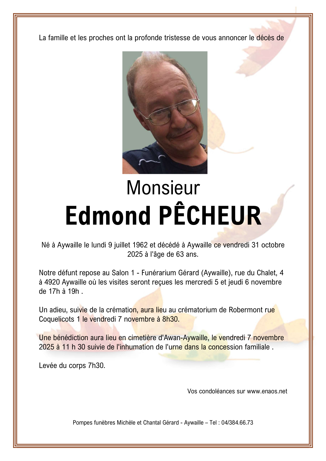 Décédé à Aywaille (4920) le vendredi 31 octobre 2025 à l'âge de 63 ans