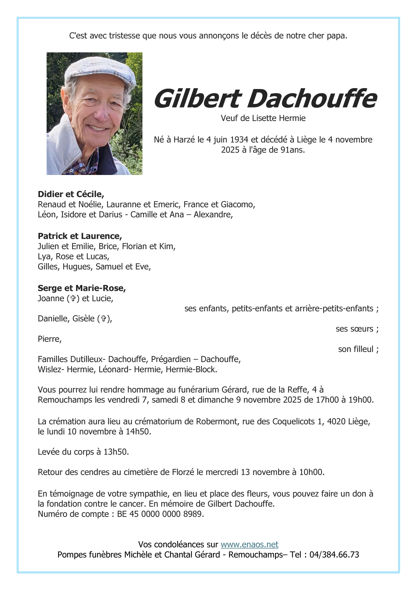 Décédé à Liège (4000) le mardi 4 novembre 2025 à l'âge de 91 ans