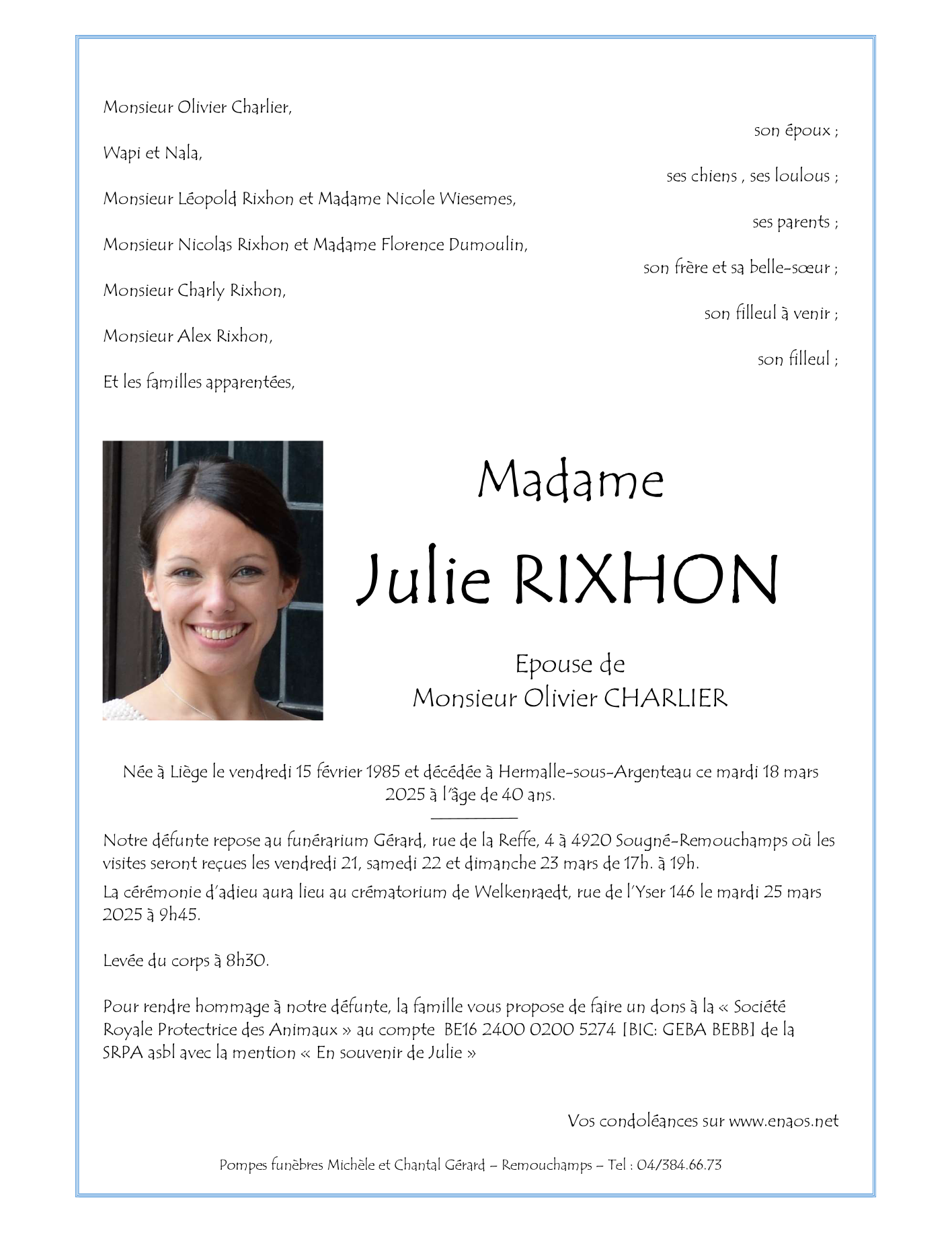 Décédée à Hermalle-sous-Argenteau (4681) le mardi 18 mars 2025 à l'âge de 40 ans