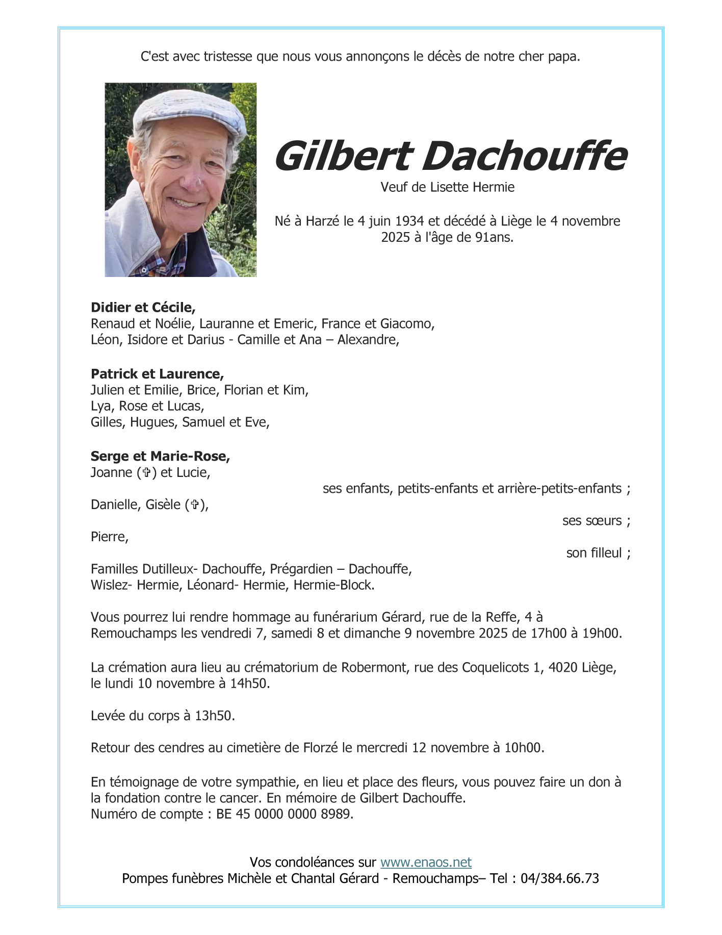 Décédé à Liège (4000) le mardi 4 novembre 2025 à l'âge de 91 ans