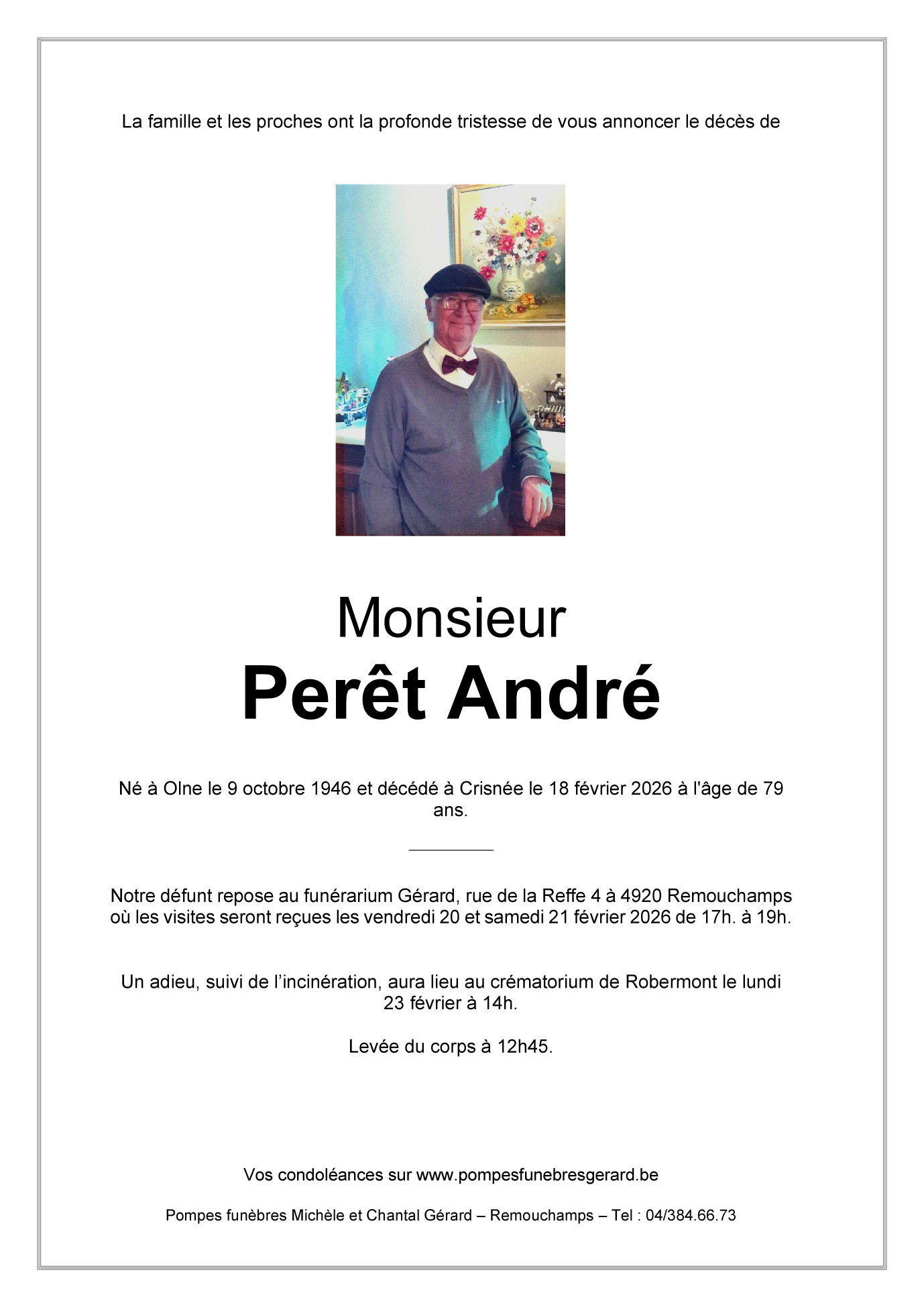 Décédé à Crisnée (4367) le mercredi 18 février 2026 à l'âge de 79 ans