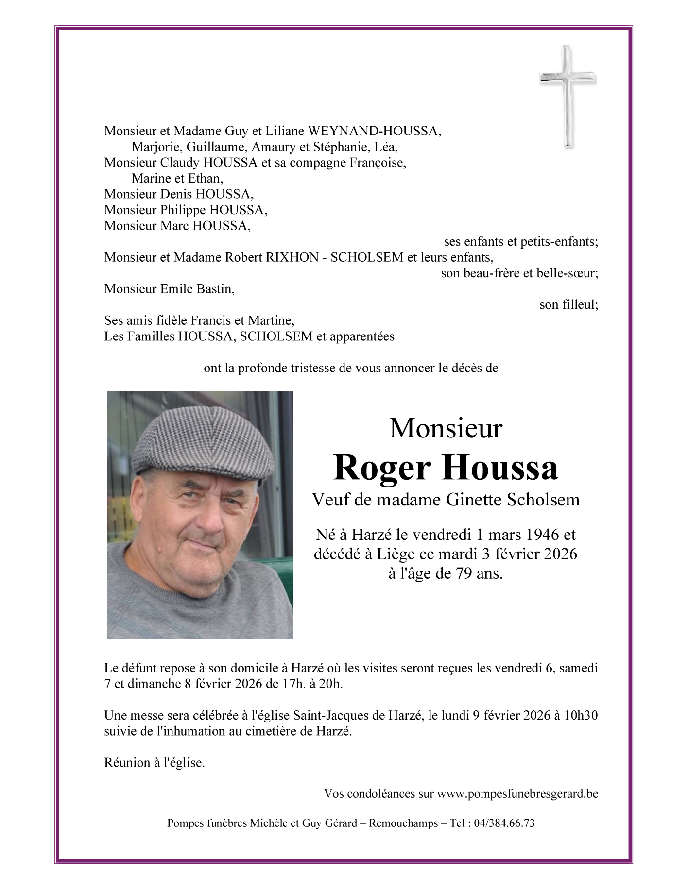 Né à Harzé (4920) le vendredi 1 mars 1946